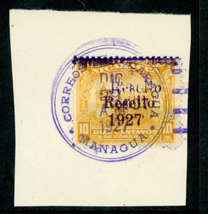 Nicaragua 1927 Cathedral Provisional 10¢ Yellow w/Ditto Ink Double OP VFU V239 ⭐