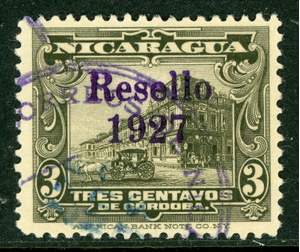 Nicaragua 1927 Cathedral Provisional 3¢ Olive w/Ditto Ink VFU V217 ⭐