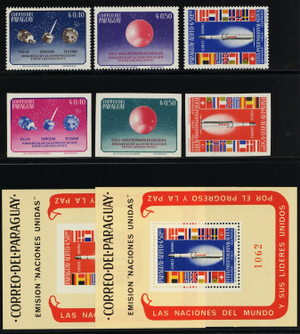 Paraguay 1964 MNH - Stamp Space Rocket, flags of Europe Perf + Imperf Collection