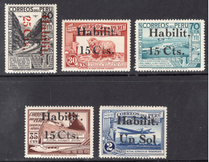 Peru Scott C40-C44. Complete set. Mint. Never hinged.