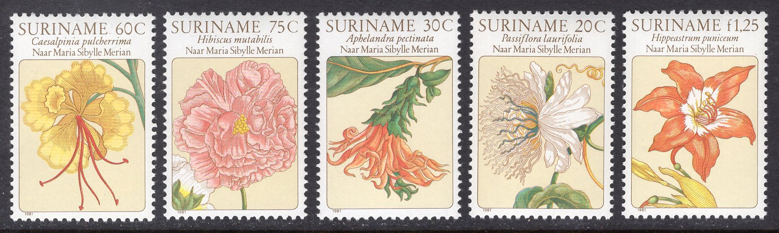 Surinam Scott 563-567. Complete set. Mint. Never hinged.