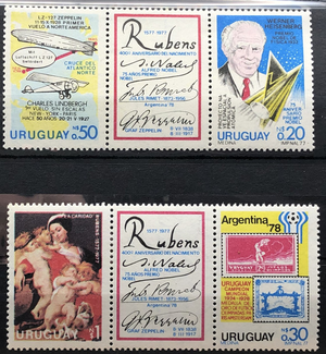 Anniveraries and events, 1977. Strip, 2 each, + 2 labels.