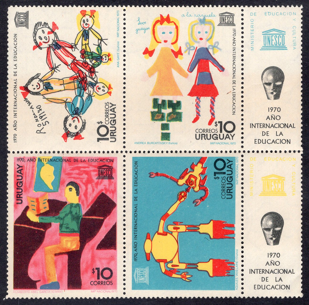 Uruguay Scott 789A. Block of 4. Mint. Never hinged.