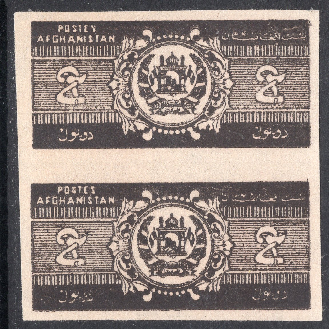 Afghanistan Scott 318. Vertical Pair. Mint. No Gum. Imperforate. 4