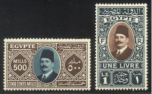 Scott #148-49: 1927 King Fuad High Values Centering & Condition: Mint. Fresh. Very Fine. Reverse (Gum Side): Original gum. Lightly Hinged. Faults / Imperfections: None The item pictured is the actual item you are purchasing, unless otherwise noted. I also offer an interest-free layaway plan. Ask me about it!" All items will be mailed a day or two after payment is received. --------------------------------------------------------------------------------