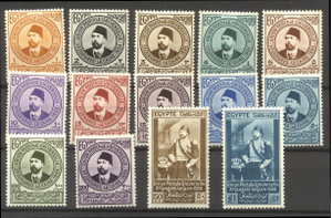 Scott #177-90: 1934 Ismael Pasha Set Centering & Condition: Mint. Fresh. Fine-Very Fine Set. Reverse (Gum Side): Original gum. Lightly Hinged. Faults / Imperfections: None The item pictured is the actual item you are purchasing, unless otherwise noted. I also offer an interest-free layaway plan. Ask me about it!" All items will be mailed a day or two after payment is received. --------------------------------------------------------------------------------