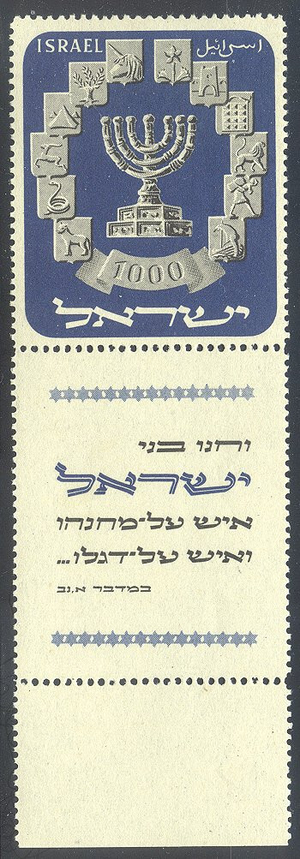 Scott #55: 1952 1000p Menorah Centering & Condition: Mint. Fresh. Very Fine. Reverse (Gum Side): Original gum. Never Hinged. Faults / Imperfections: None The item pictured is the actual item you are purchasing, unless otherwise noted. I also offer an interest-free layaway plan. Ask me about it!" All items will be mailed a day or two after payment is received. --------------------------------------------------------------------------------
