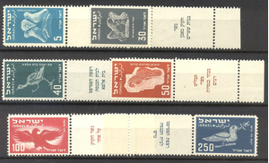 Scott #C1-6: 1950 Air Mail Set Centering & Condition: Mint. Fresh. Fine-Very Fine set with Tabs.. Reverse (Gum Side): Original gum. Never Hinged. C6 Has fingerprint in selvage. Faults / Imperfections: None The item pictured is the actual item you are purchasing, unless otherwise noted. I also offer an interest-free layaway plan. Ask me about it!" All items will be mailed a day or two after payment is received. ![]() ![]() ![]() --------------------------------------------------------------------------------