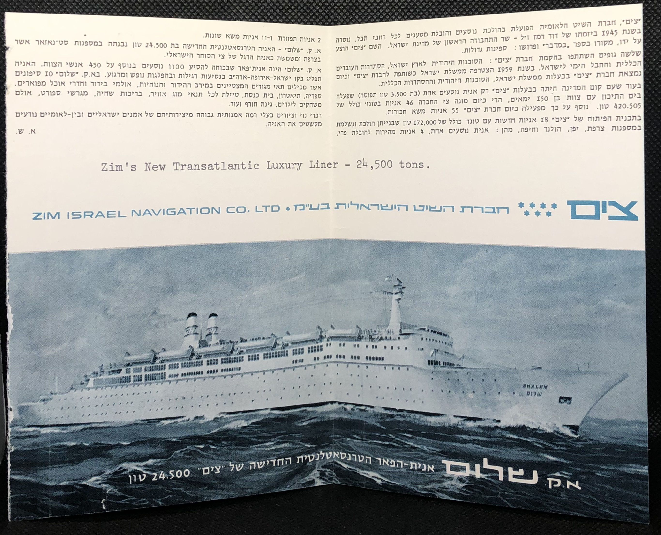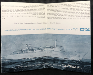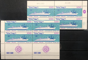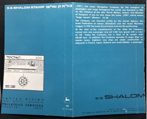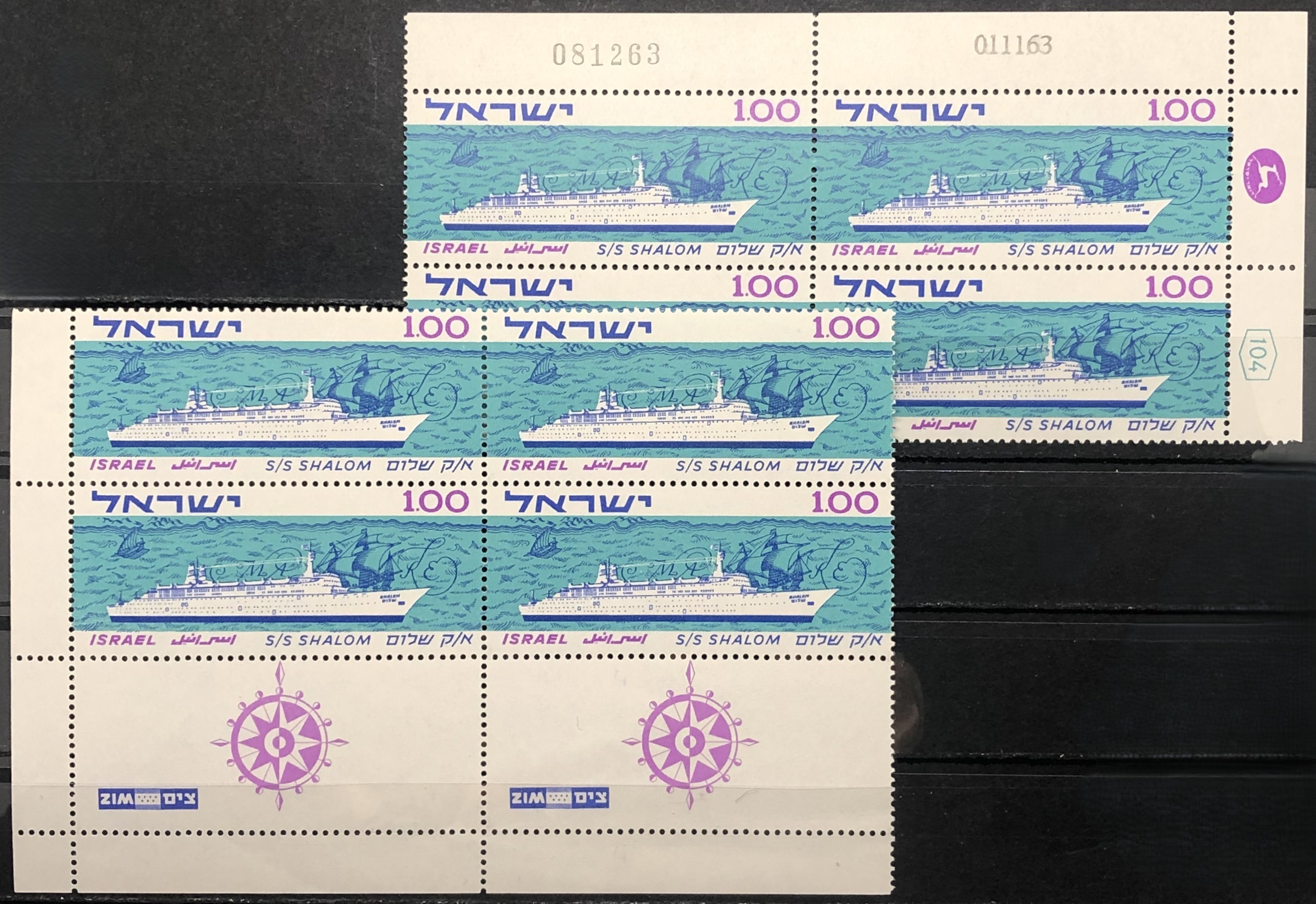 Maiden Voyage of the S.S. Shalom, 1963. Two blocks of 4 with 2 tabs and cover.