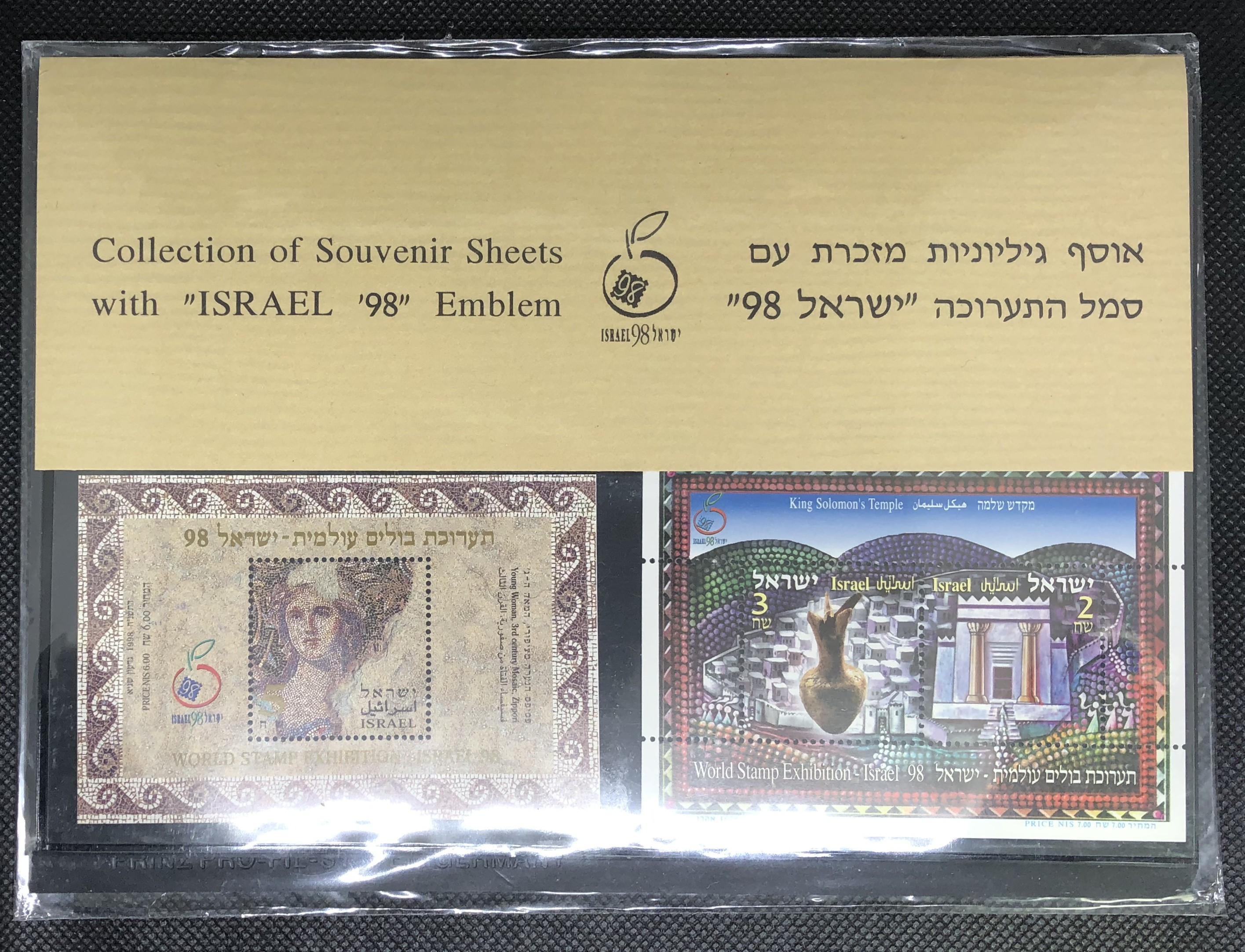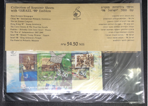 This collection features a unique set of souvenir sheets that showcase the national emblem of Israel. The sheets are in their original packaging.Â