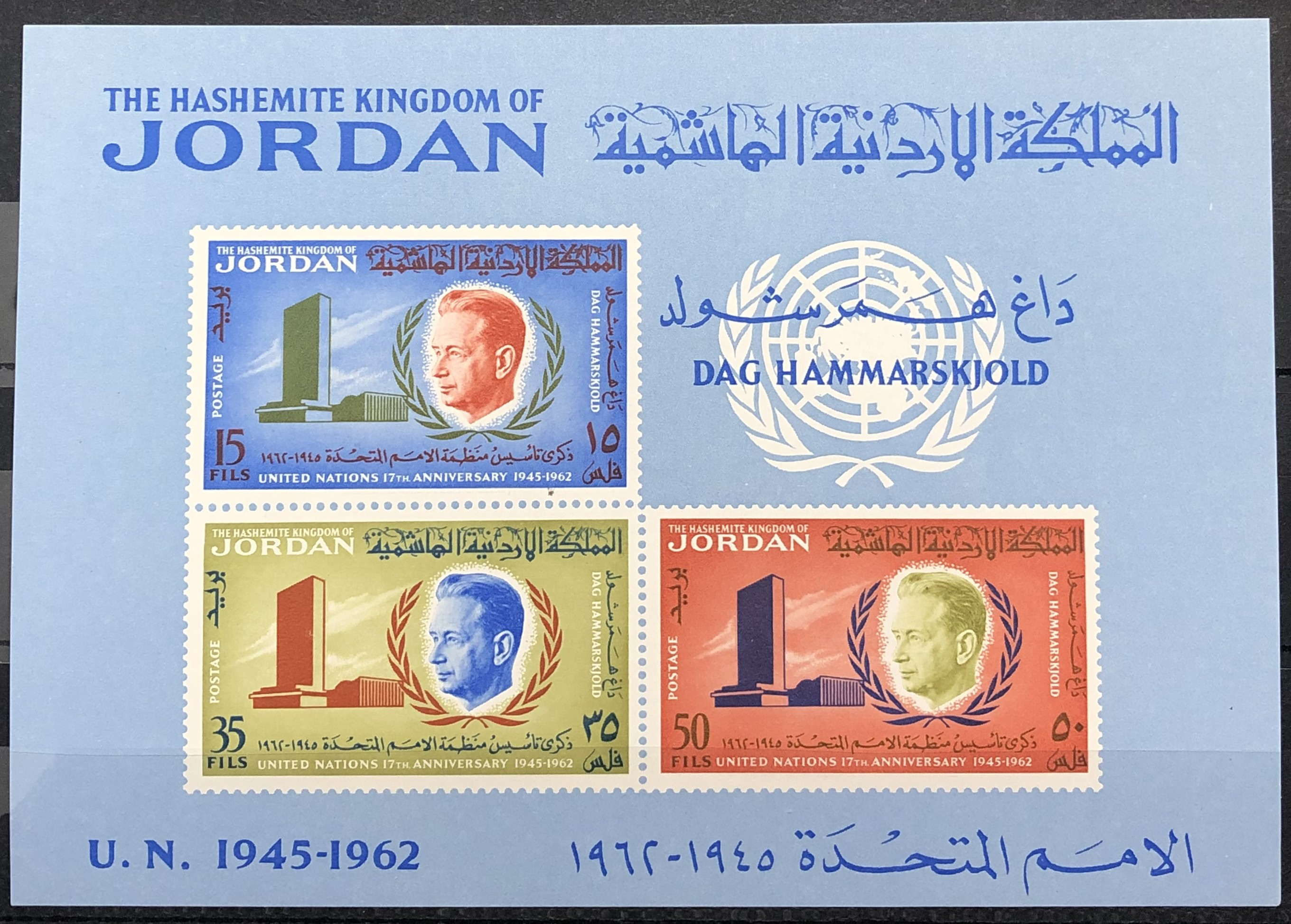 17th anniversary of the U.N. and in memory of Dag Hammarskjold, 1963. Imperf souvenir sheet.
