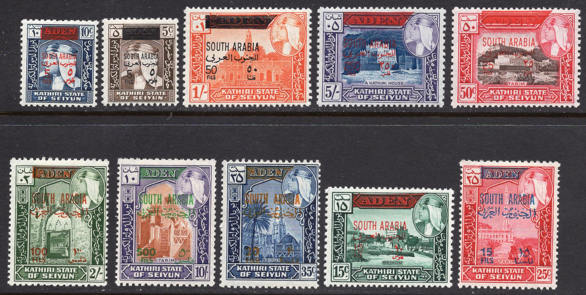 Aden-Kathhiri State of Seiyun Scott 29-38. Complete set. Unused. South Arabia overprint type 1.