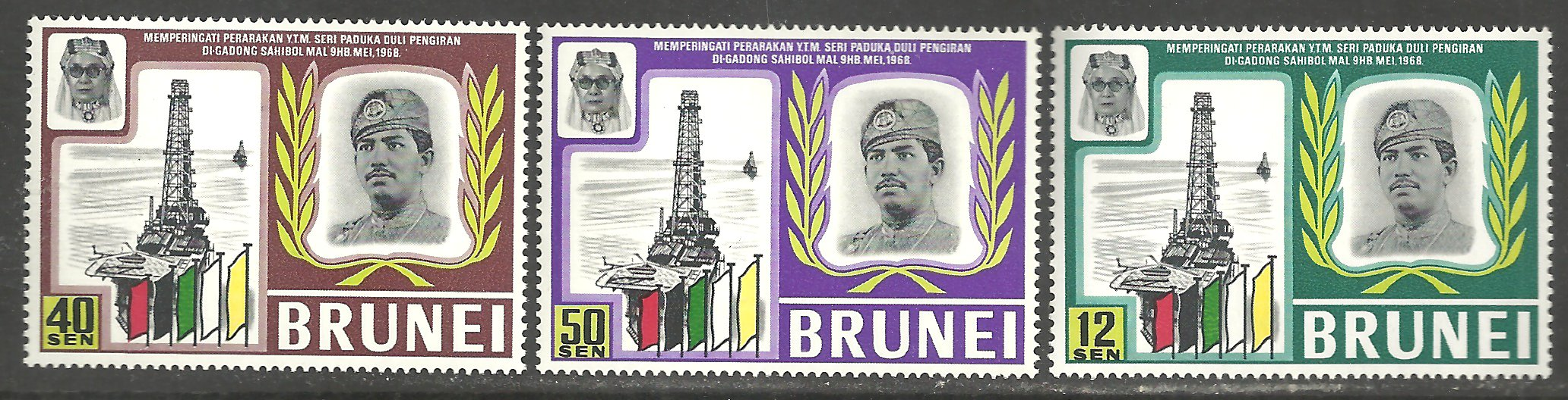 Brunei Scott 153-155. Complete set. Mint. Never hinged.