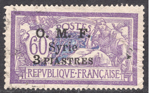 Syria Scott 94. Used. Thins. Hole. 6