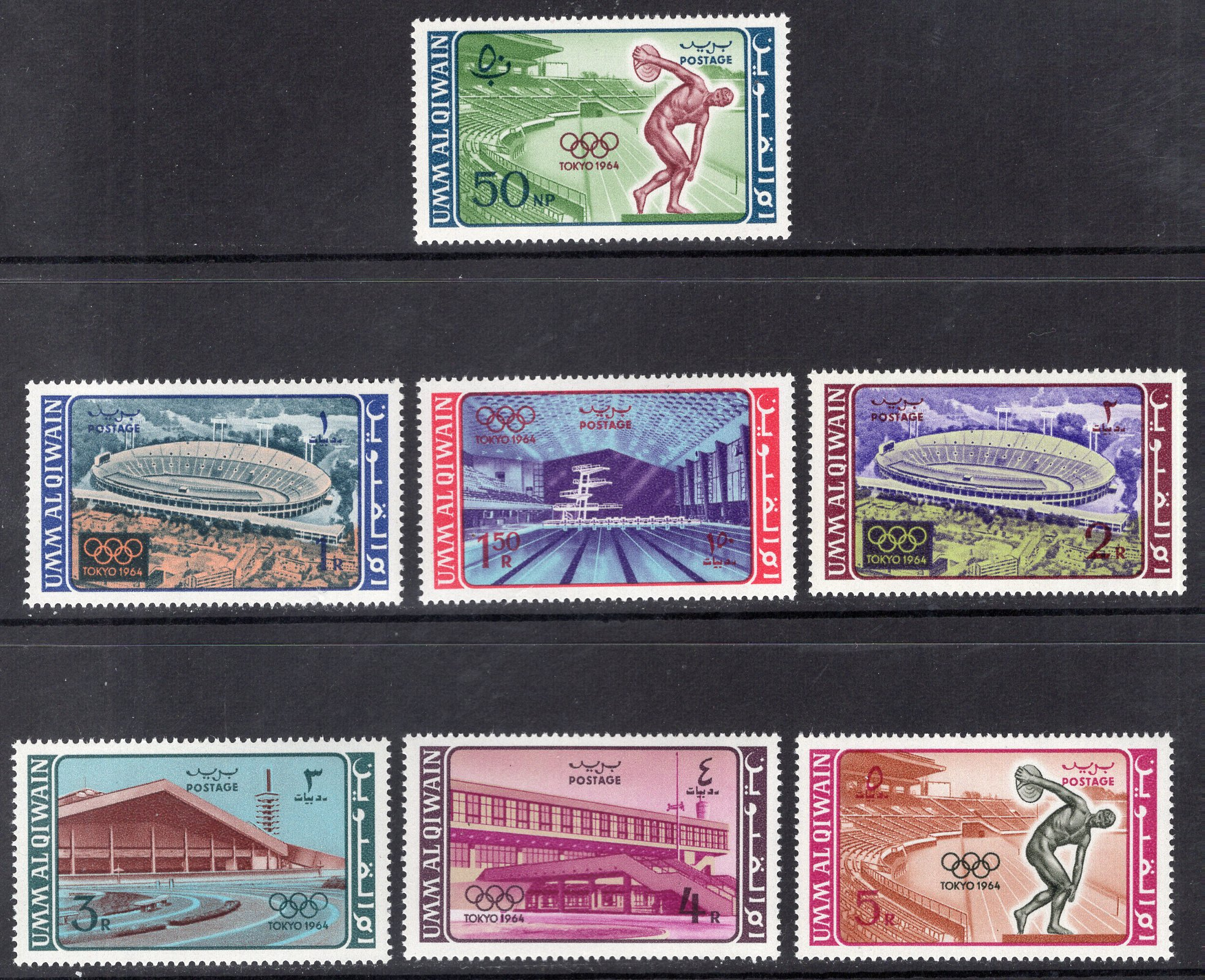 Umm Al Qiwain Scott 19-25. Complete set. Mint. Never hinged.