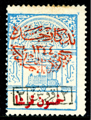 Saudi Arabia 1925 Jedda 2 Pi on 50 Pi Light Blue Variety Scott 65v Mint U854