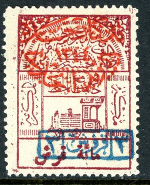 Saudi Arabia 1925 Jedda 3 Pi on 100 Pi Red Red Scott 66 Mint U856