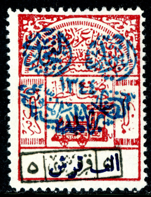 Saudi Arabia 1925 Medina 4 Pi on 500 Pi Dull Red Scott 62 Mint U851