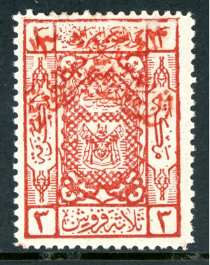 Saudi Arabia 1925 Nejd First Issue 3pi Brown Red - Red OP Scott #19 Mint Q811