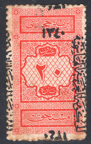 Saudi Arabia Scott LJ4. Unused. Stain. Number on back.