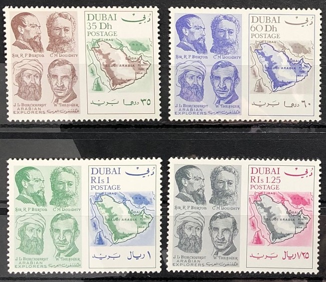 Explorers and Map of Arabia, 1969. Complete set of 4.