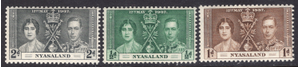 Nyasaland Protectorate Scott 51-53. Complete set. Mint. Never hinged. 2