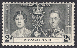 Nyasaland Protectorate Scott 53. Mint. Never hinged. Perf thin. 2