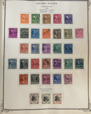 American Album for United States stamps. Scott Stamp Album 1946. Hard cover album from Scott. Contains through 1946 and stamp #938. Also contains extensive back of book sections from airmail to provisionals, revenue stamps, newspaper, government official, to even confederate stamps.