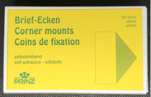 Box of 100 Prinz large format, 37mm, corner mounts. Excellent for thicker and heavier items such as covers.