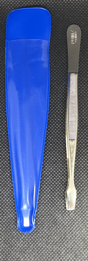 "Stamp tongs 120mm/ 4.5"" length. Made of the best Solingen steel, these hand-sanded tongs allow particularly careful handling of your stamps. Comes with protective sleeve.