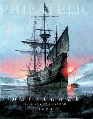 This is a like-new copy of the United States Postal Service Philatelic brochure (volume 25) for the 4th quarter of 2020.  The cover features a picture of the Mayflower ship in Boston Harbor.