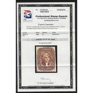 U.S. #12 CHOICE Used w/ Cert - 5c Red Brown