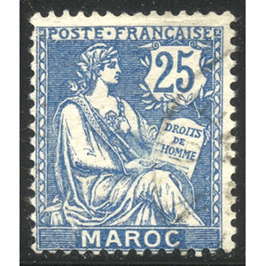 FRENCH MOROCCO #81a Used - 1918 25c Blue, Overprint Omitted