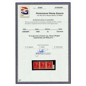 368H, Mint NH VF 2¢ Imperforate Coil Strip With PSE Certificate * Stuart Katz