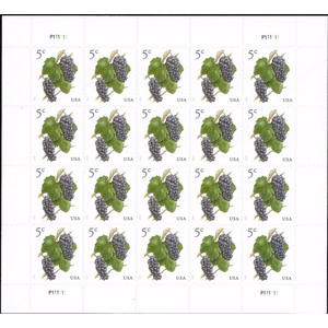 Grapes Stamp Sheet of Twenty 5 Cent Postage Stamps Scott 5177