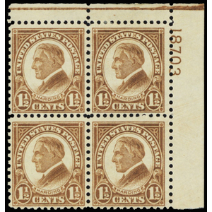 675, Mint NH 6¢ Plate Block of Four CV $750 - Stuart Katz