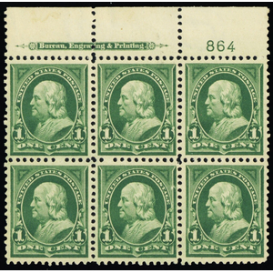279, Mint VF/XF NH Top Plate Block of Six Stamps * Stuart Katz