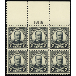 559, Mint VF NH 7¢ FULL WIDE TOP Plate Block of Six Stamps * Stuart Katz