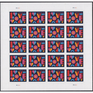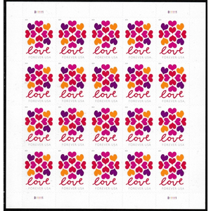 Love Hearts Full Sealed Pad of 100 Sheets (2000 Stamps) Scott 5543
