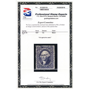 36, Used XF 12¢ - Very RARE So Nice! With PSE Certificate - Stuart Katz