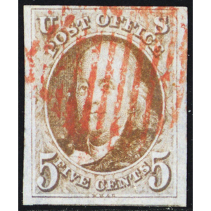 75, Used 5¢ Scarce Stamp With flaws Cat $425.00 - Stuart Katz