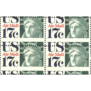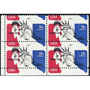 C87, 18¢ Statue of Liberty Color Shift ERROR Airmail Zip Block - Stuart Katz