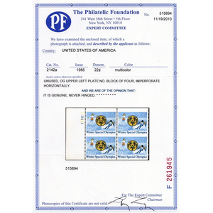 2142a, Mint XF NH 22¢ Imperforate Between Error PB PFC Certificate - Stuart Katz