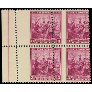 836, Mint NH 3¢ Scarce Early Misperforation Error Block of Four -- Stuart Katz