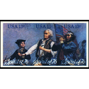 1631b, MNH 13¢ Imperforate Error Strip of 3 Stamps “Spirit of 76” - Stuart Katz