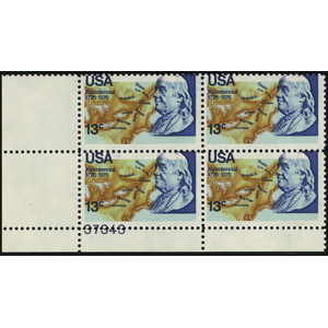 1690, MNH 13¢ Dark Blue Color Shifted UP Plate Block Freak Error- Stuart Katz