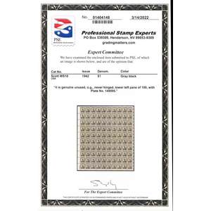 F1, Mint VF NH 10¢ Registry Stamp - Stuart Katz