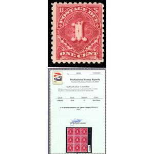 J17, Mint NH 3¢ Postage Due - With PSAG Certificate $2500 - Stuart Katz