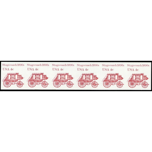 1898Ad, Mint VF NH 4¢ Stagecoach Imperforate Strip of Six Error - Stuart Katz