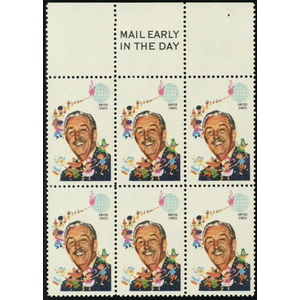 1355a, Mint NH 6¢ Disney With Ochre Color Omitted Error Block PFC * Stuart Katz